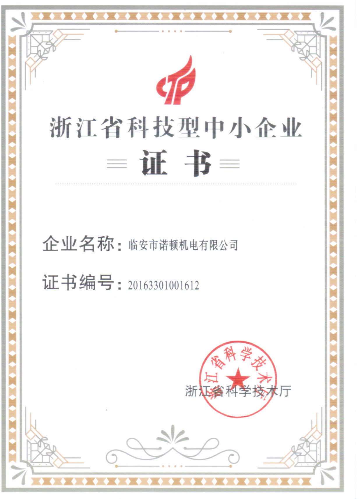 祝賀諾頓公司獲評(píng)“浙江省科技型中小企業(yè)”
